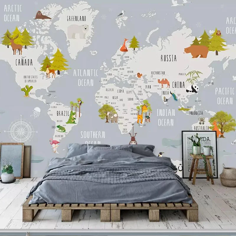 Beibehang Custom 3d Behang Foto Mode Cartoon Wereldkaart Kinderkamer Slaapkamer Muurschildering Achtergrond Muur Decoratie Schilderen Custom Wallpaper Papel De Paredepapel De Aliexpress . Wereldkaart Voor Kinderen Behang Dieren Kinderkamer265X350 Cm Vinyl Behang | Wereldkaart Behang.