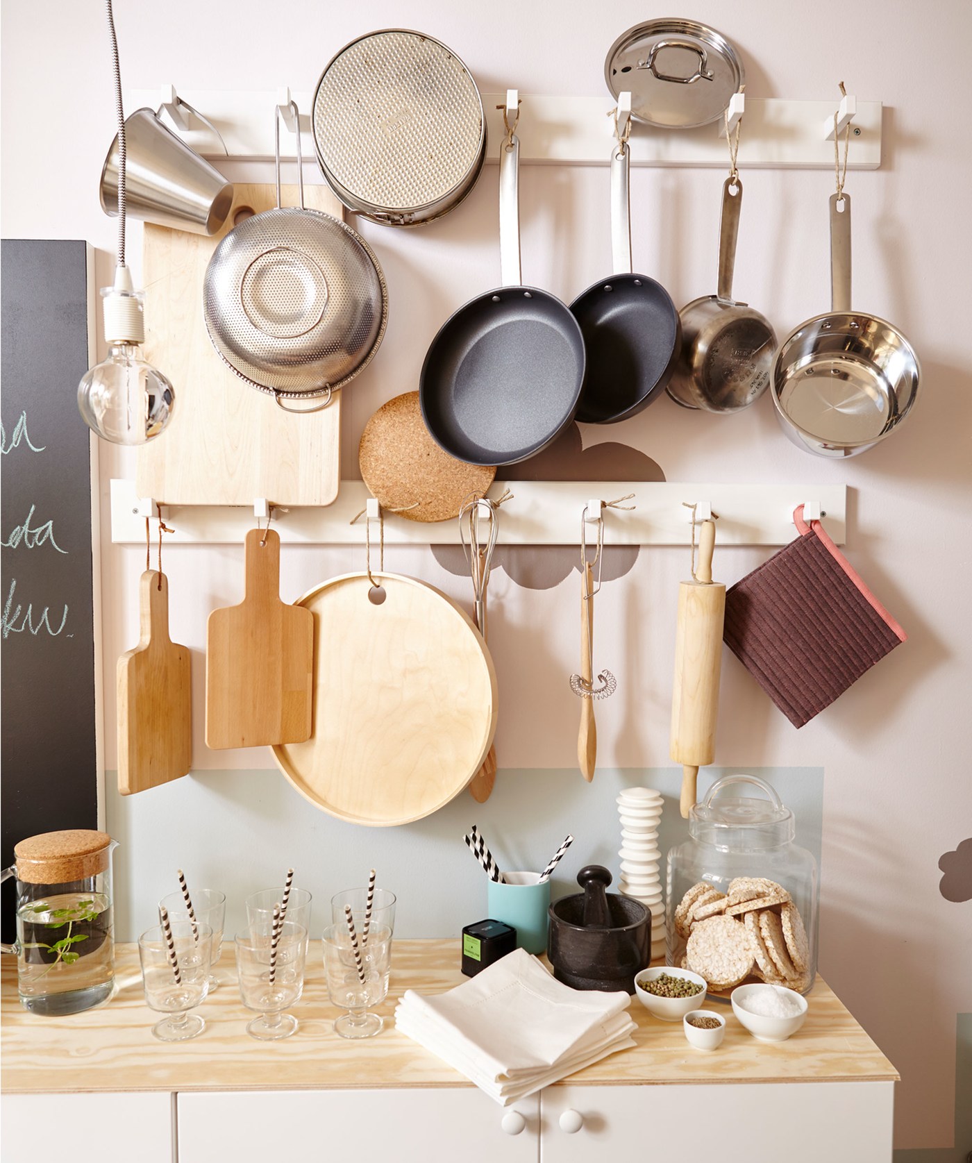 Alles Voor Ophangen En Beschermen Da S Leuk Van Xenos , Keukengerei voor keuken, restaurant, koken, keukengerei objecten op grijze wand plakken.