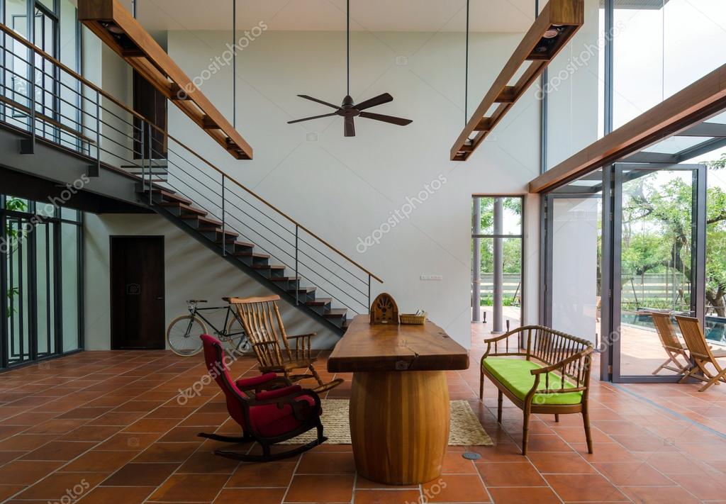 Woonkamer Met Trap Stockfoto C Siraanamwong 49183289 - Een Mooie Design Trap Als Stralend Middelpunt Van Je Woonkamer Geeft Je Woning Iets Bijzonders.