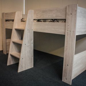 Hoogslaper Duplex 192 Cm Hoog In Naturel Kastanje Met Zwart : Dit Comfortabele Bed Draagt Met Gemak Twee Personen.